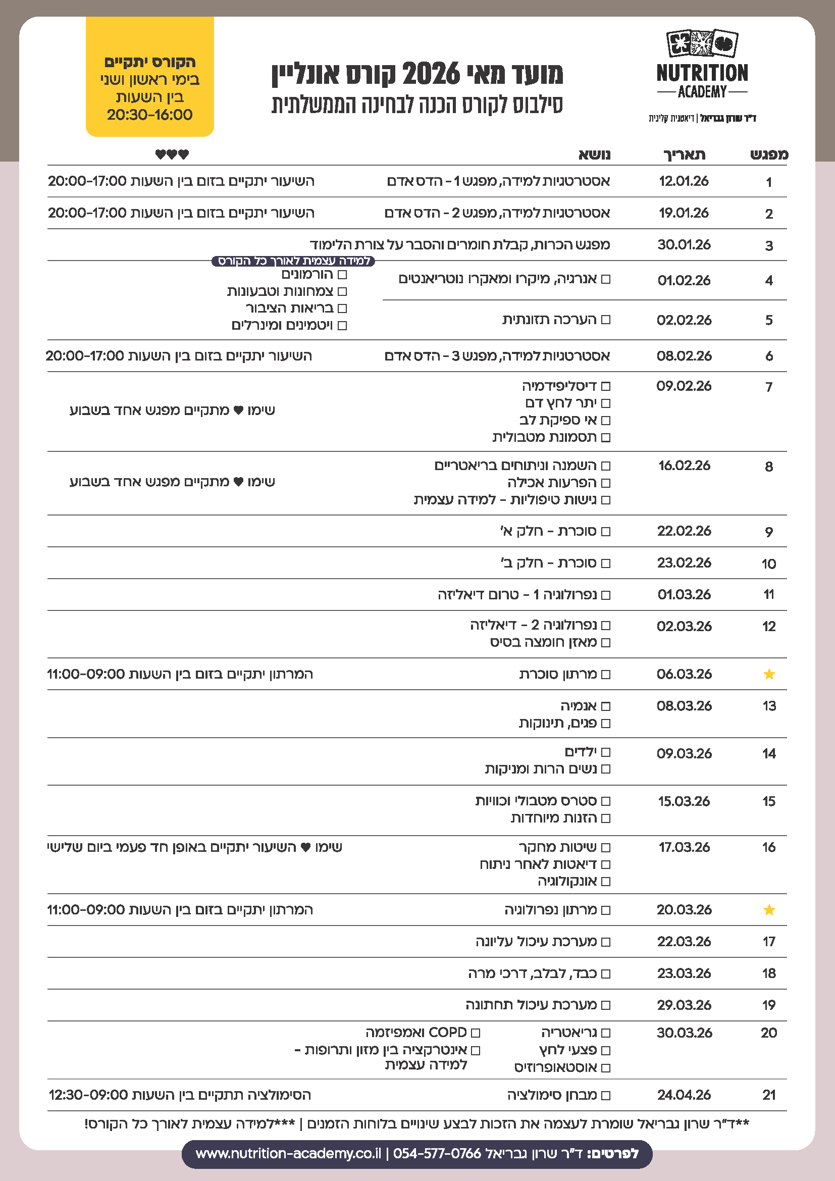 תוכנית קורס תוכנית קורס מועד מאי 2026 סתוכנית קורס פרונטלי תוכנית קורס אינטרנטי (אונליין) על הקורס מסלולי הלימוד